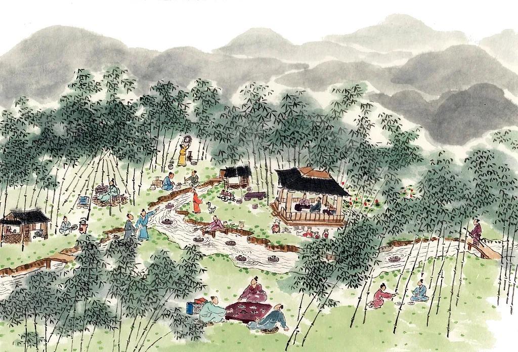 魏晉時期,上巳節的內涵漸漸豐富,除了莊重的祓禊祈福,更演變成皇室貴族、文人雅士臨水宴飲、吟詩作賦的雅集盛會,也由此誕生了流傳千古的“曲水流觴”。