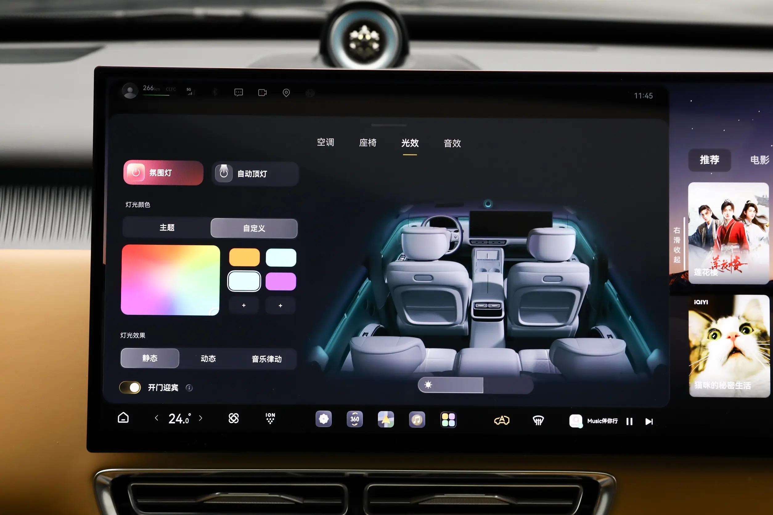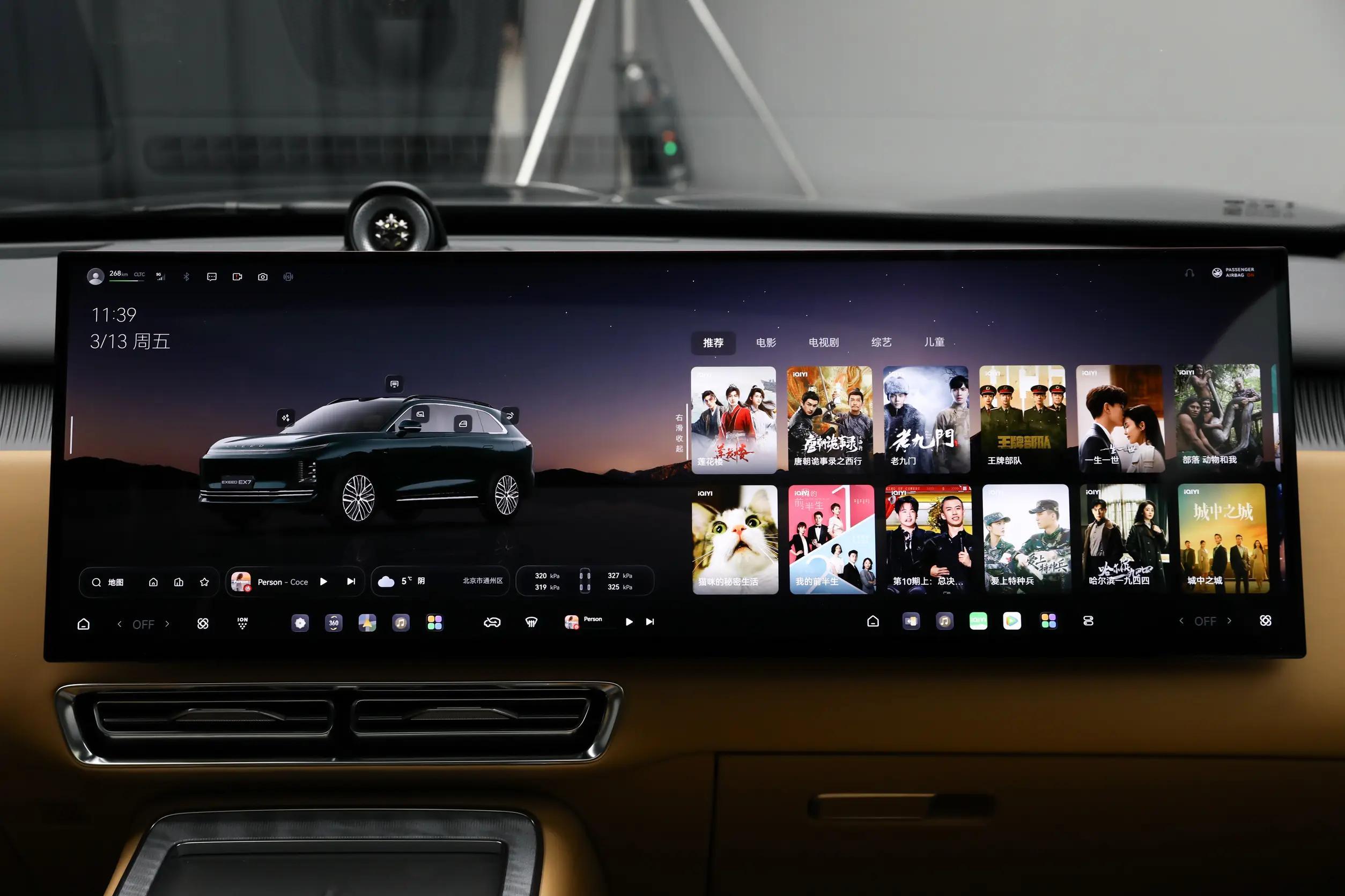 內飾方面,星途EX7全系搭載AI靈犀智艙2.0,車內配備雙輻式多功能方向盤、10.25英寸液晶儀表、30英寸6K懸浮式中控/副駕聯屏、24英寸HUD抬頭顯示系統等。車機系統由高通驍龍8295P芯片提供支持,具備蘋果CarPlay、華爲HiCar、Carlink手機互聯、前後排語音分區喚醒及控制等功能。