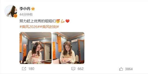 當天下午14:42,李小冉發文:“努力趕上優秀的姐姐們”,配圖是自己的兩張工作照,疑似回應相關傳聞。