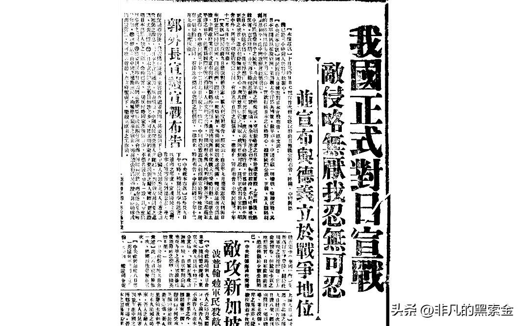 而蔣某人直到1941年12月9日——即珍珠港事件爆發兩天後才正式對日宣戰。在此之前,儘管雙方實際交戰已持續四年有餘,但法律上僅被日方稱爲“事變“,中方則定義爲“特別軍事行動“。