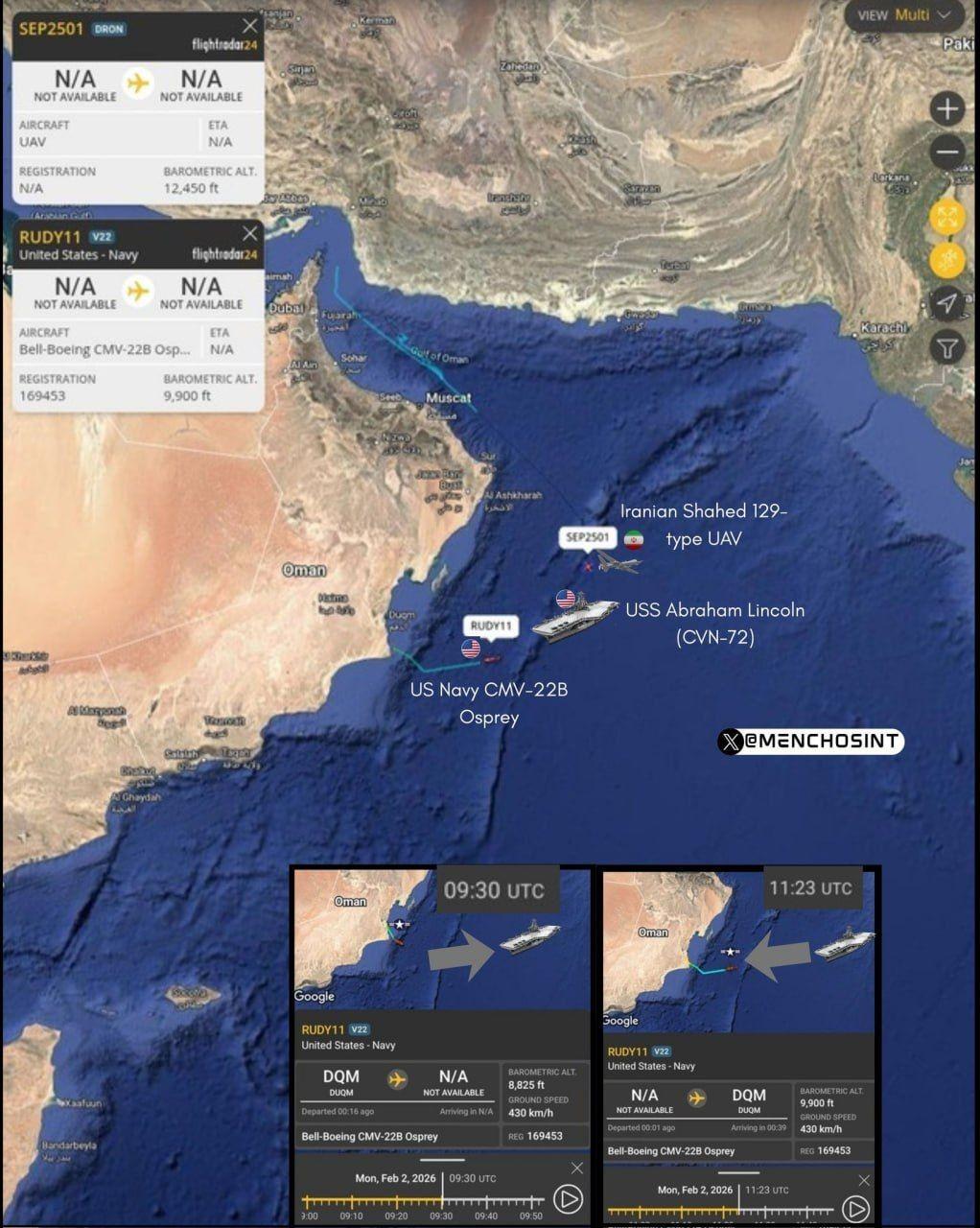 按照美軍的說法,事發時美軍“林肯”號航母正在阿拉伯海遊弋,距離伊朗本土大約800公里,一架伊朗無人機突然高速逼近美國航母,美軍聲稱在採取了“緩和局勢”的舉動後,伊朗無人機依然繼續逼近,爲了確保安全,“林肯”號上起飛了F-35C隱形戰鬥機,將伊朗無人機成功擊落。