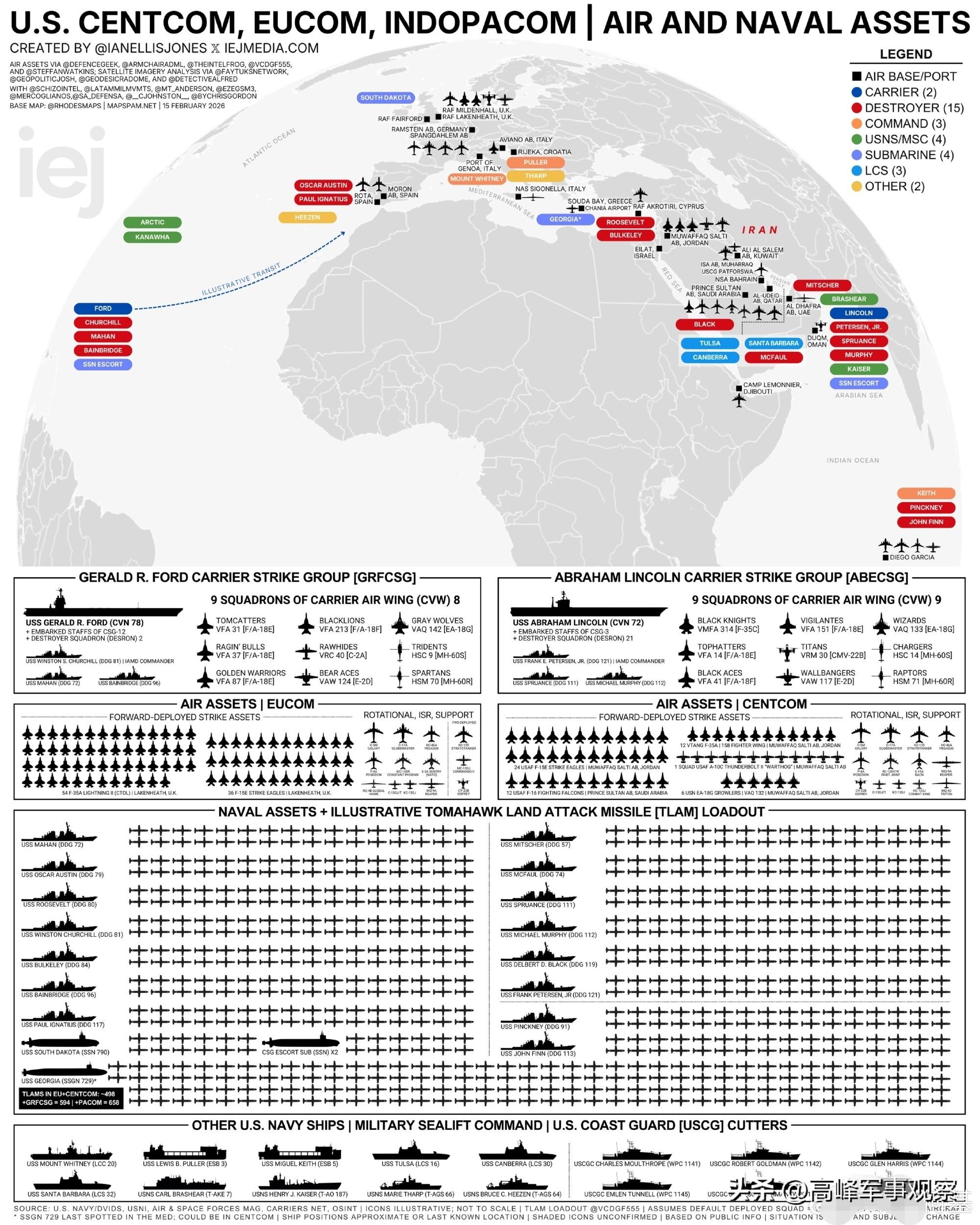 雖然現在還在特朗普最後通牒的15天期限內,但美軍發動突襲的仍然概率很高。剛出現一個危險信號是,2月22日,美軍的E-3A 預警機(LX-N90442 c/s NATO09)部署在土耳其科尼亞空軍基地,執行了對伊朗的首次情報收集任務。 這個細節與美軍在2025年6月發起對伊朗的“深夜鐵錘”打擊行動前完全一致。由於美伊在關鍵問題上存在難以調和的分歧,談判已毫無意義,伊朗向邊境調重兵,意味着他們已經放棄幻想了。