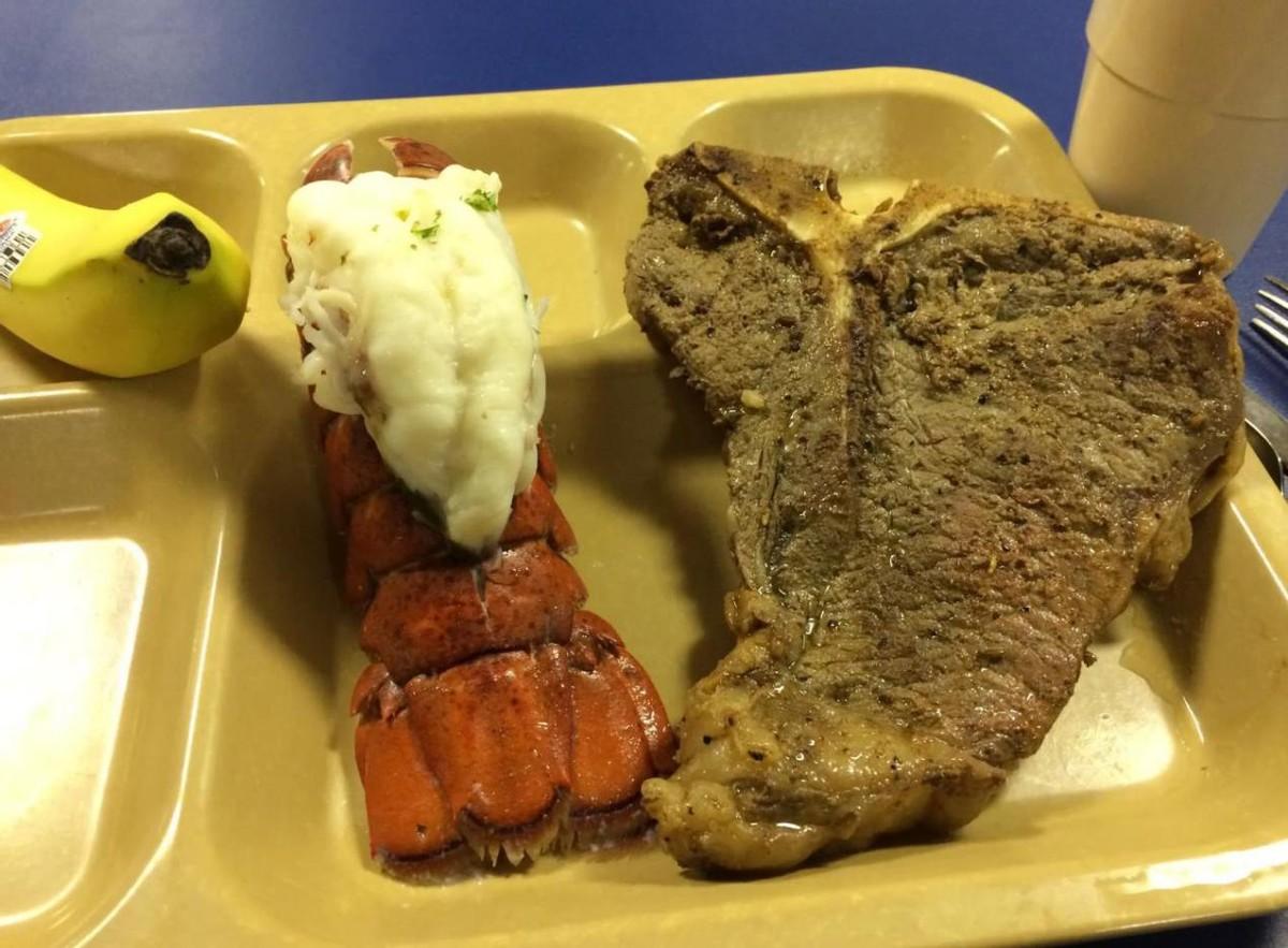 (美軍航母上的龍蝦和牛排大餐)
