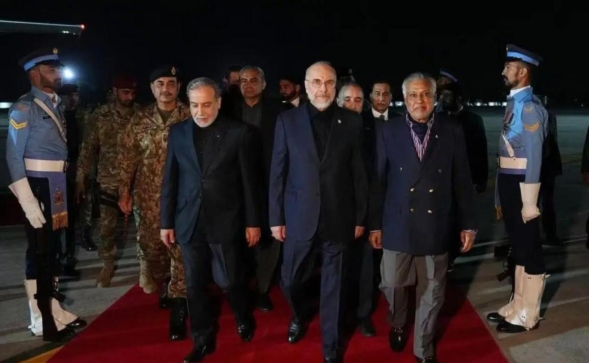 緊接着,一架從伊朗出發的巴基斯坦空軍伊爾-76運輸機也於當地時間4月10日夜裏抵達巴基斯坦,伊朗方面派遣的外交代表團由伊朗議長加利巴夫和外交部長阿拉格奇帶隊,他們受到了巴外交部長達爾、議長薩迪克、陸軍參謀長穆尼爾元帥等軍政高官的隆重迎接。