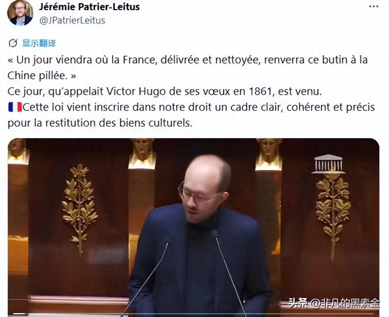 有人以爲這只是法國針對我們的特殊示好,其實該法案並非只針對我們,而是面向所有曾受法國殖民掠奪的國家。法案適用範圍明確覆蓋了1815年至1972年間,通過戰爭劫掠、非法盜掘、強迫交易等方式獲取的文化財產。
