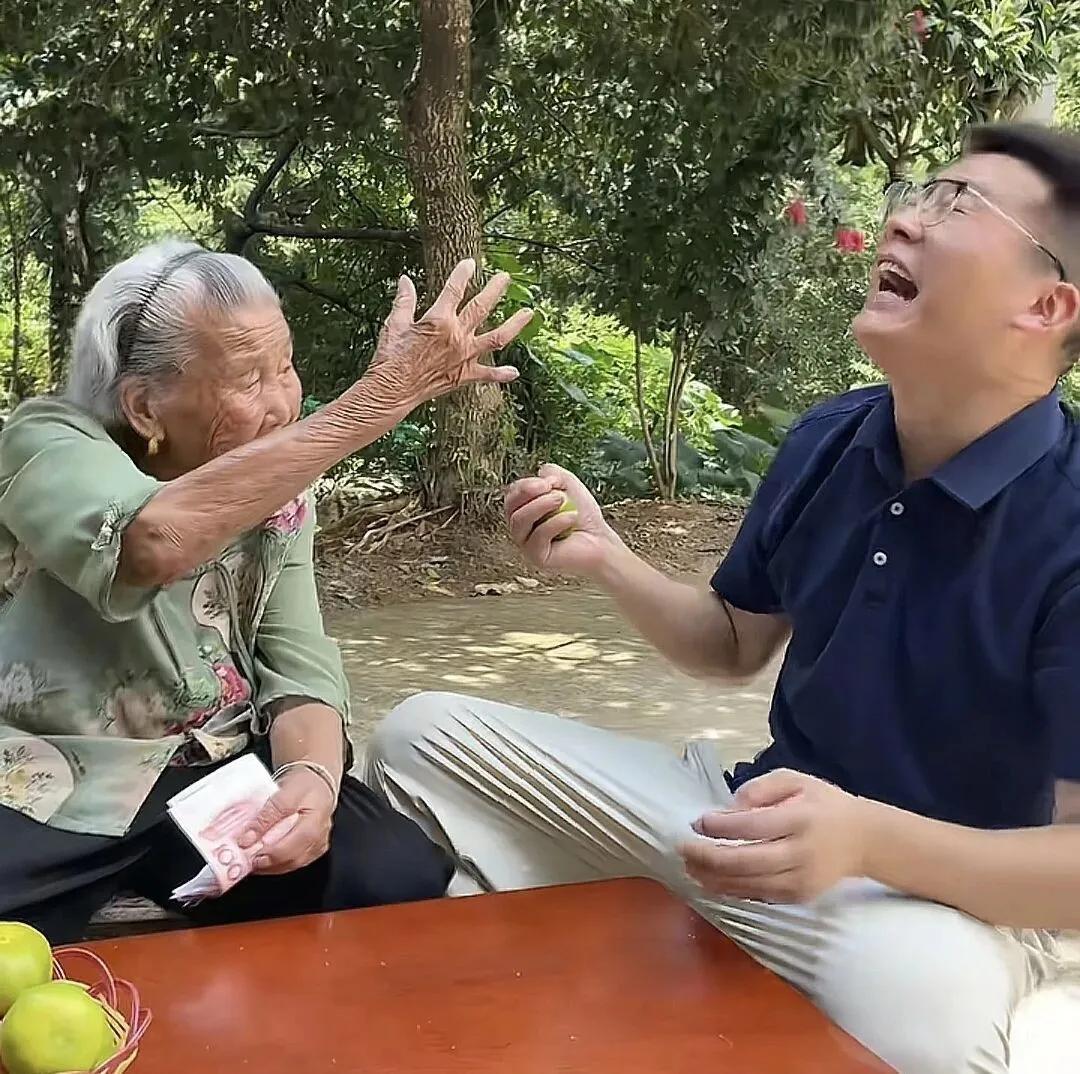 這位百歲老人是個“遊戲達人”,和孫子玩兒“石頭、剪刀、布”贏錢小遊戲時,會調皮地“耍賴”,把之前輸掉的錢全部“贏”回來,臉上還露出“計謀得逞”的狡黠笑容。