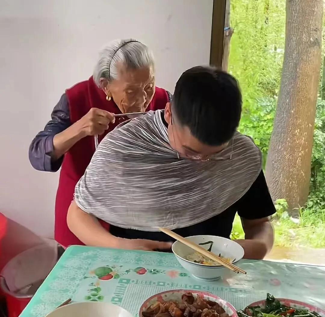 看見孫子喫飯時,麪條掉在衣服上,奶奶會細心地拿來圍裙,爲孫子繫上。看到許昊不想喫飯,奶奶也會端着飯走過來,一口一口地餵給孫子。這些看似滑稽的場景,卻是老人最真摯的關懷。