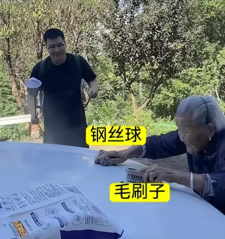 一不留神,奶奶已經拿着鋼絲球,把車擦了一遍。許昊站在旁邊,臉上一副“愛,就是我看你鬧”的表情。