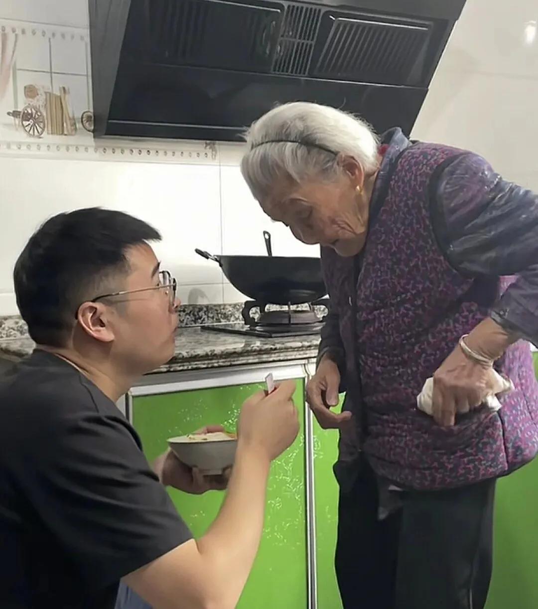 這段祖孫情的動人之處,不僅在於孫子的精心呵護,更在於那份雙向流淌的情感。即使年過百歲,奶奶對孫輩的關愛也從未缺席。她用積累了百年的人生智慧,給出“出其不意”的溫暖。