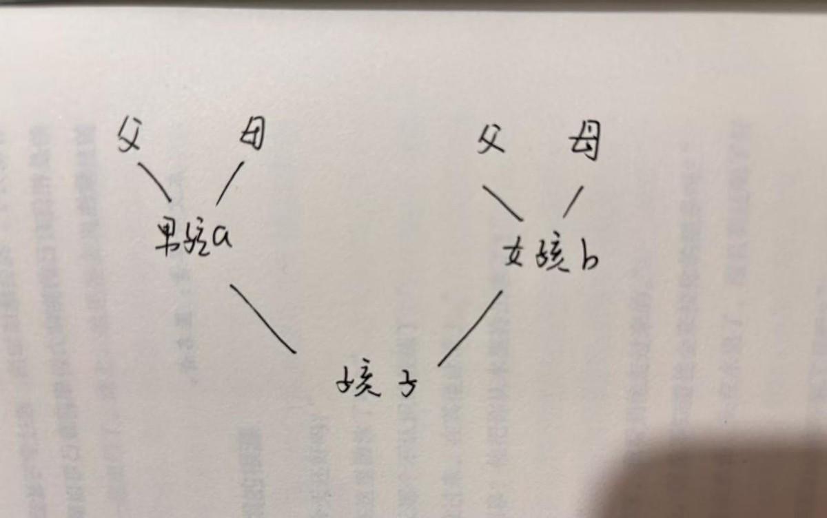 比如一對夫妻,生了男孩a。另一對夫妻,生了女孩b。
