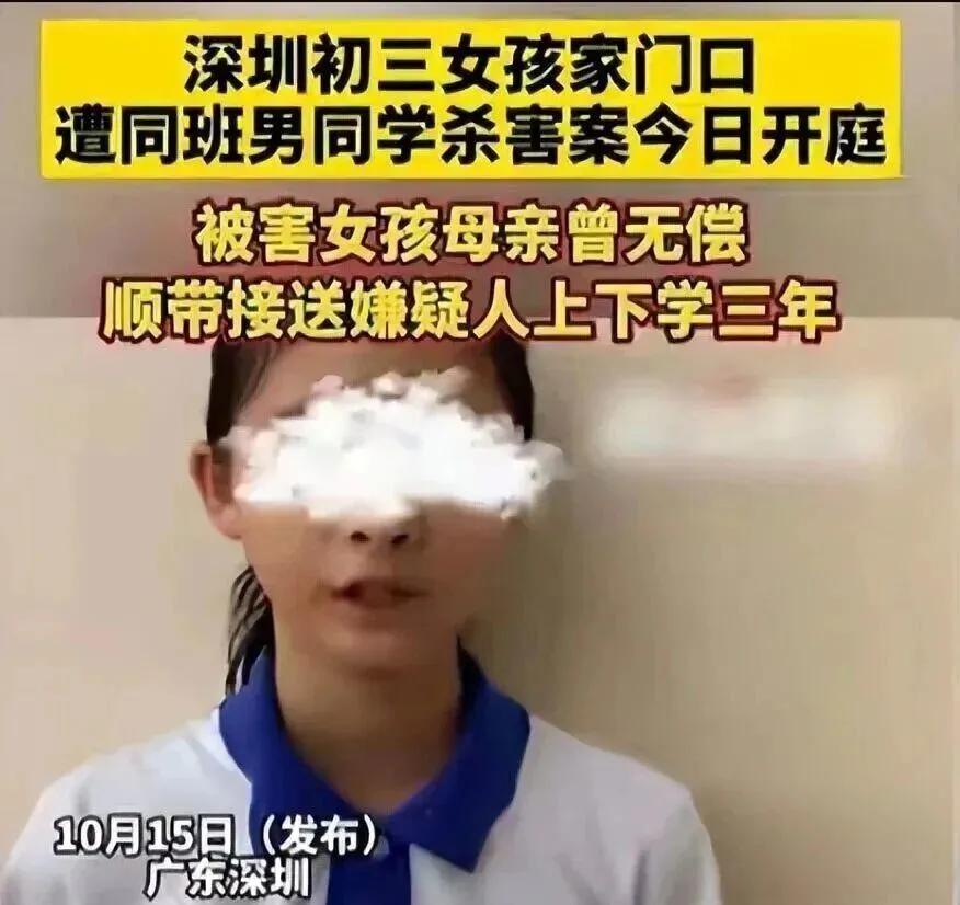 10月15日,初三女生家門口遭同班男生殺害案在深圳市中級人民法院開庭審理。庭審持續近4個小時後結束,法院宣佈擇期宣判。
