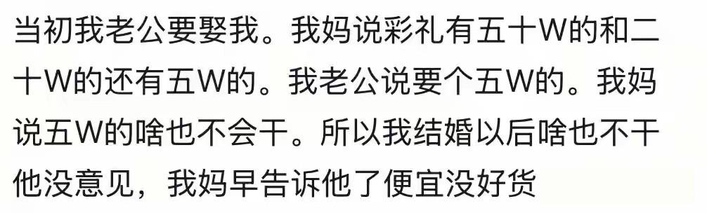 談婚論嫁時,丈母孃問,彩禮分50,20和5,你選哪個?