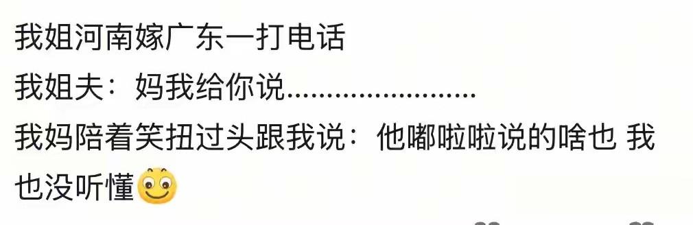 網友說,姐姐河南嫁廣東。姐夫回孃家時,好不容易逮着機會告狀了: