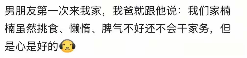 “我家女兒雖然挑食、懶,脾氣不好還不幹家務,但心是好的。”