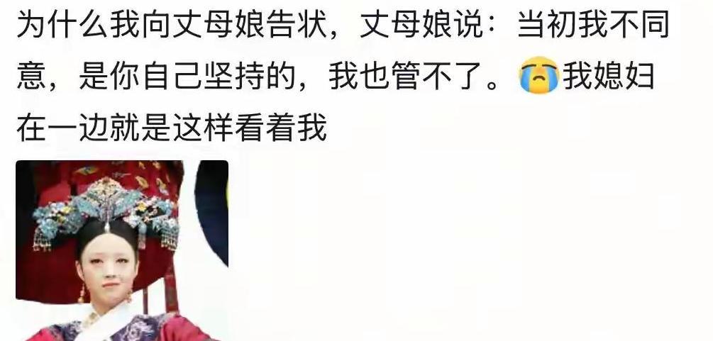 比如有位女婿說,自己向丈母孃告狀,結果丈母孃說:“當初我不同意,是你自己堅持的,我也管不了。”