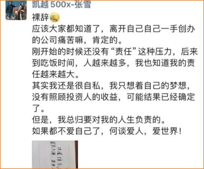 但也因爲這件事,他跟合夥人產生理念分歧,投資方要穩穩賺錢,張雪要死磕研發。