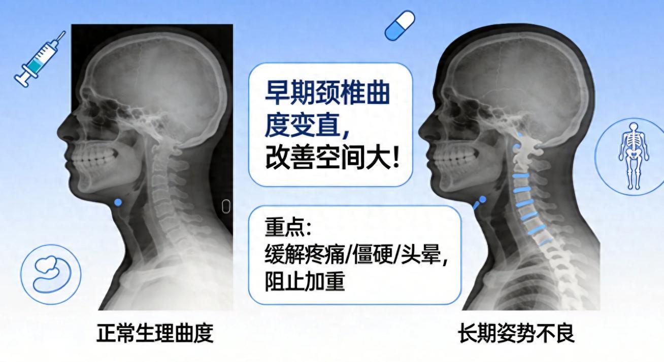 從臨牀角度看,大多數因長期姿勢不良導致的、早期的頸椎曲度變直,確實存在改善的空間,尤其是當它還沒有引起明顯的骨質增生或韌帶鈣化時。但改善的目標,不僅僅是X光片上的那個弧度,更重要的是緩解疼痛、僵硬、頭暈等症狀,並阻止其進一步加重。