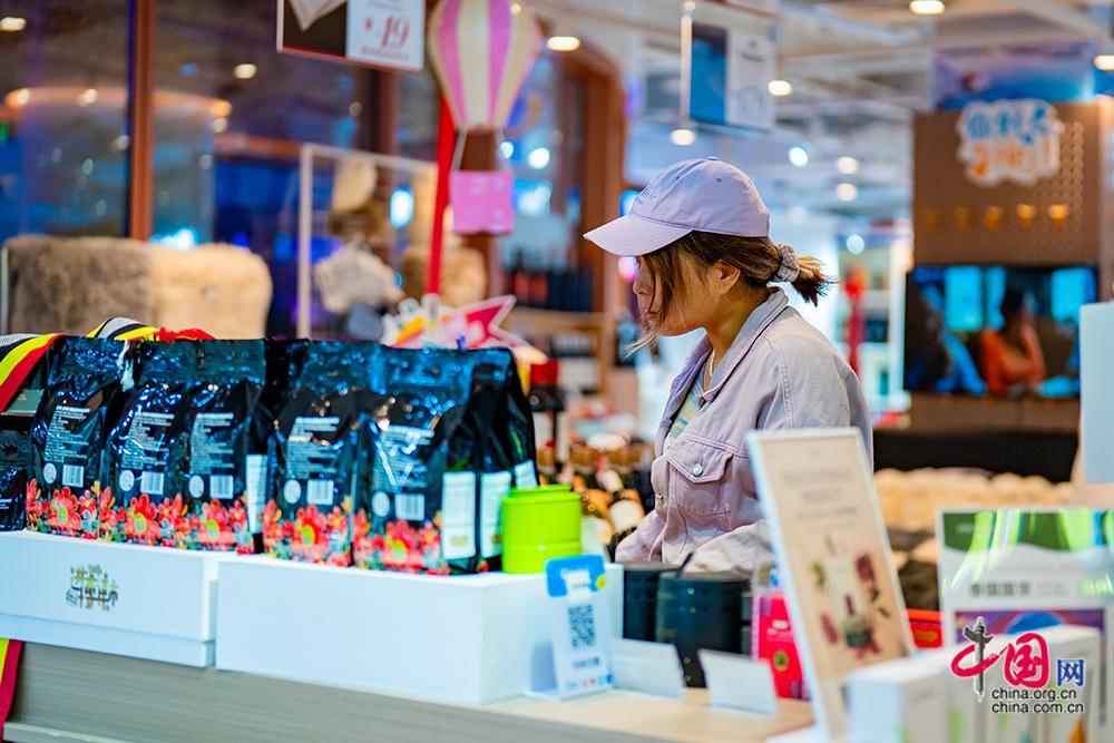 進博集市城市會客廳引入5000餘款進博同款和國別特色商品,品類涵蓋休閒零食、酒水飲料、美妝護膚、服飾箱包等。中國網記者 鄭亮 攝