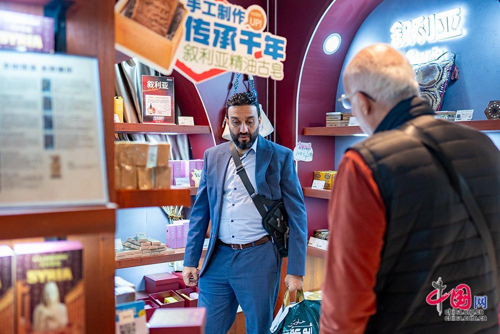 消費者可在這裏提前體驗“展品變商品”、全球好物“零時差”到手的全新場景。據現場記者觀察,不少市民與遊客從中午起便開始選購,展品中包括敘利亞文物系列文創、斯里蘭卡茶製品、蒙古國羊絨圍巾、阿根廷手工皮具等熱門單品。