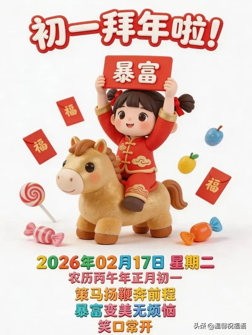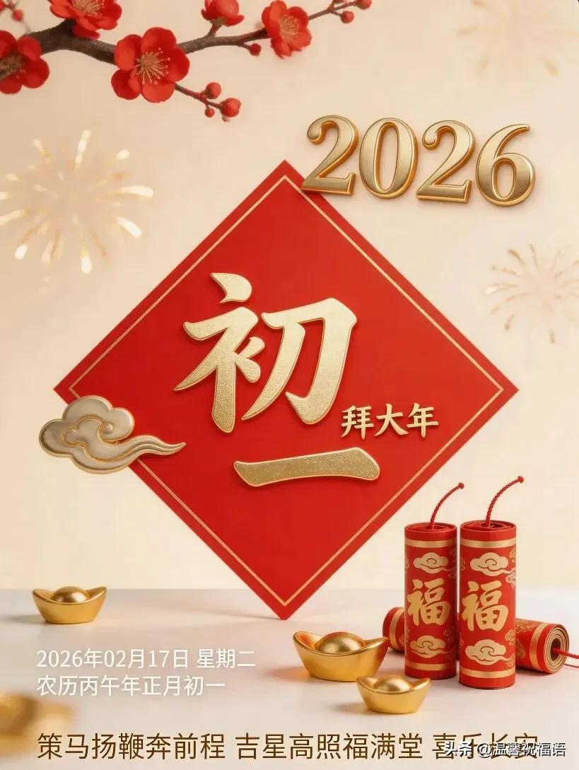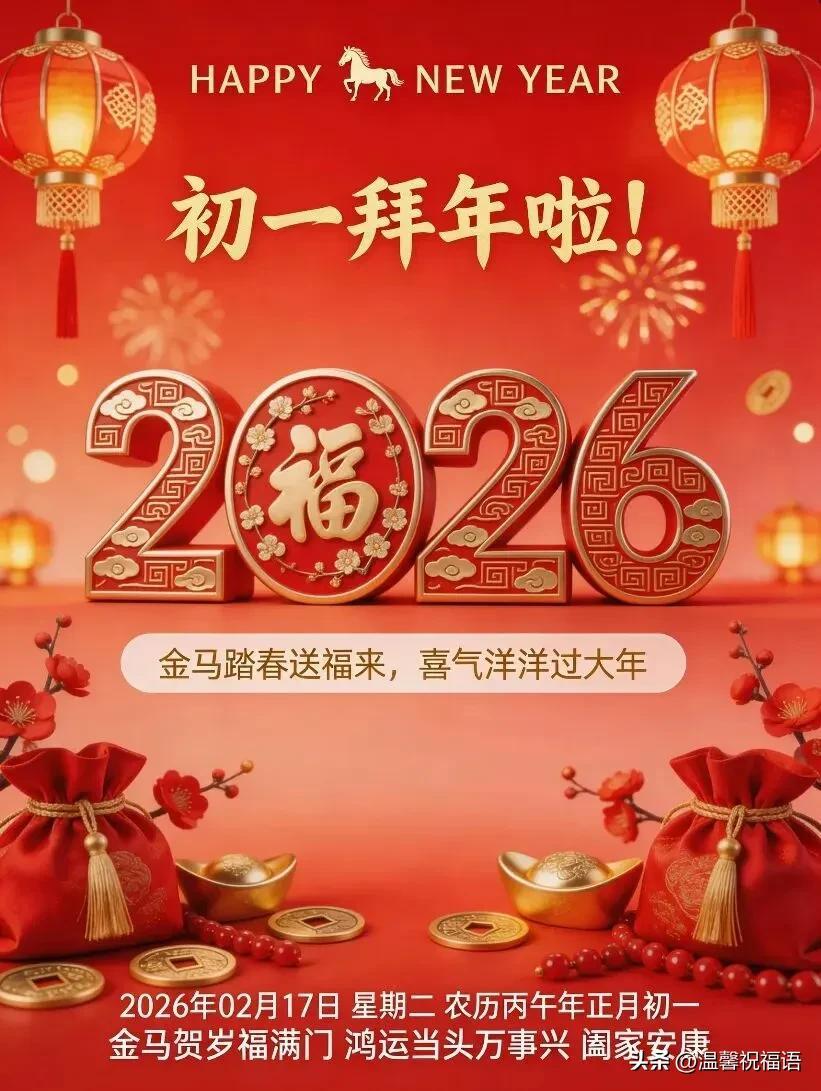 正月初一啓瑞年,開門納福拜高堂!祝您龍馬精神,腿腳靈便,身子骨硬朗。初一的喜氣護佑您✨,無病無災,歲歲安康。願福壽綿長,心情舒暢,每天都有好精神!