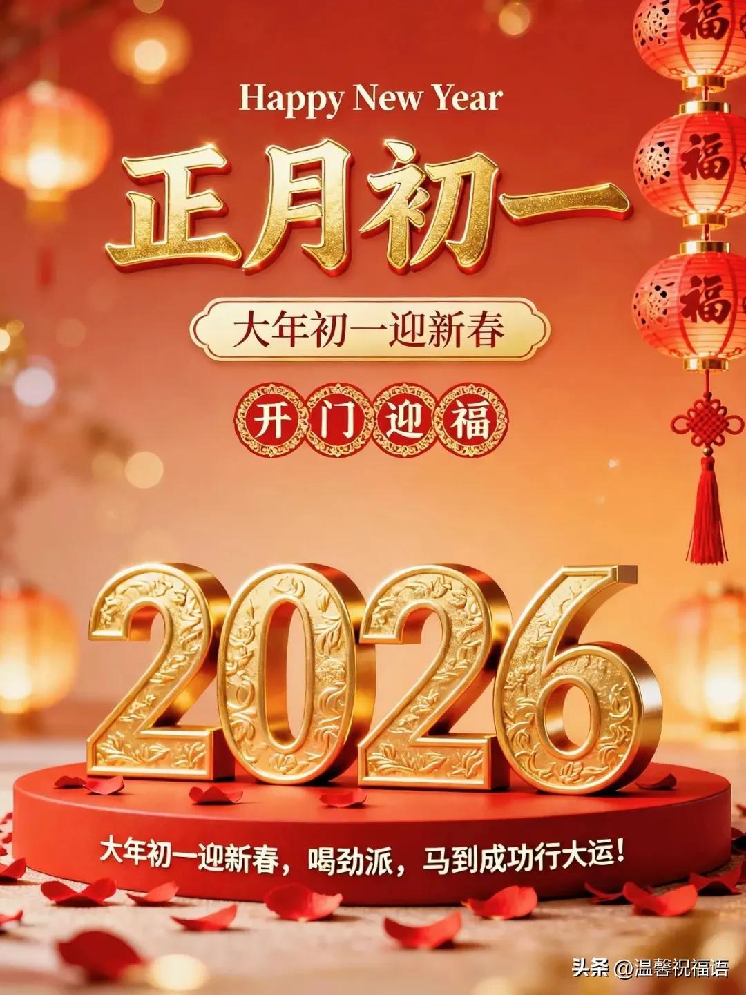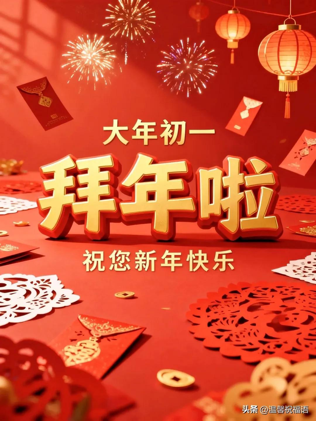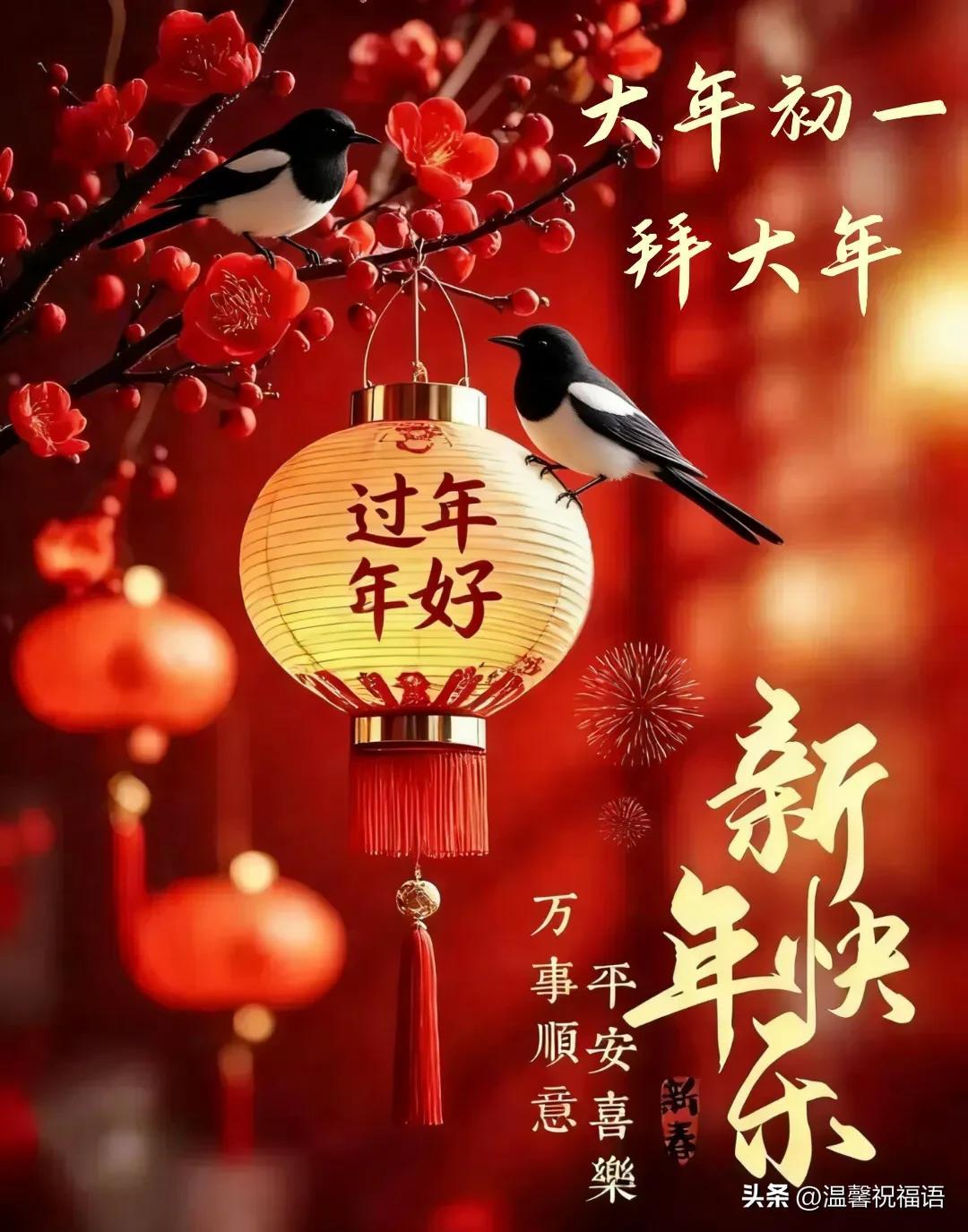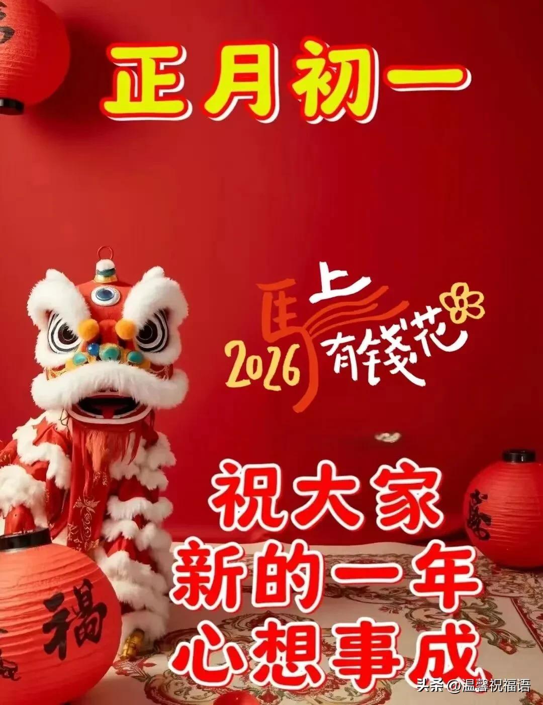 14、初一新春拜大年,願你心想事成萬事圓;身體健康福永享,愛情甜蜜家美滿;事業順利步步高,財源滾滾進家園。新春快樂,闔家幸福!❤️