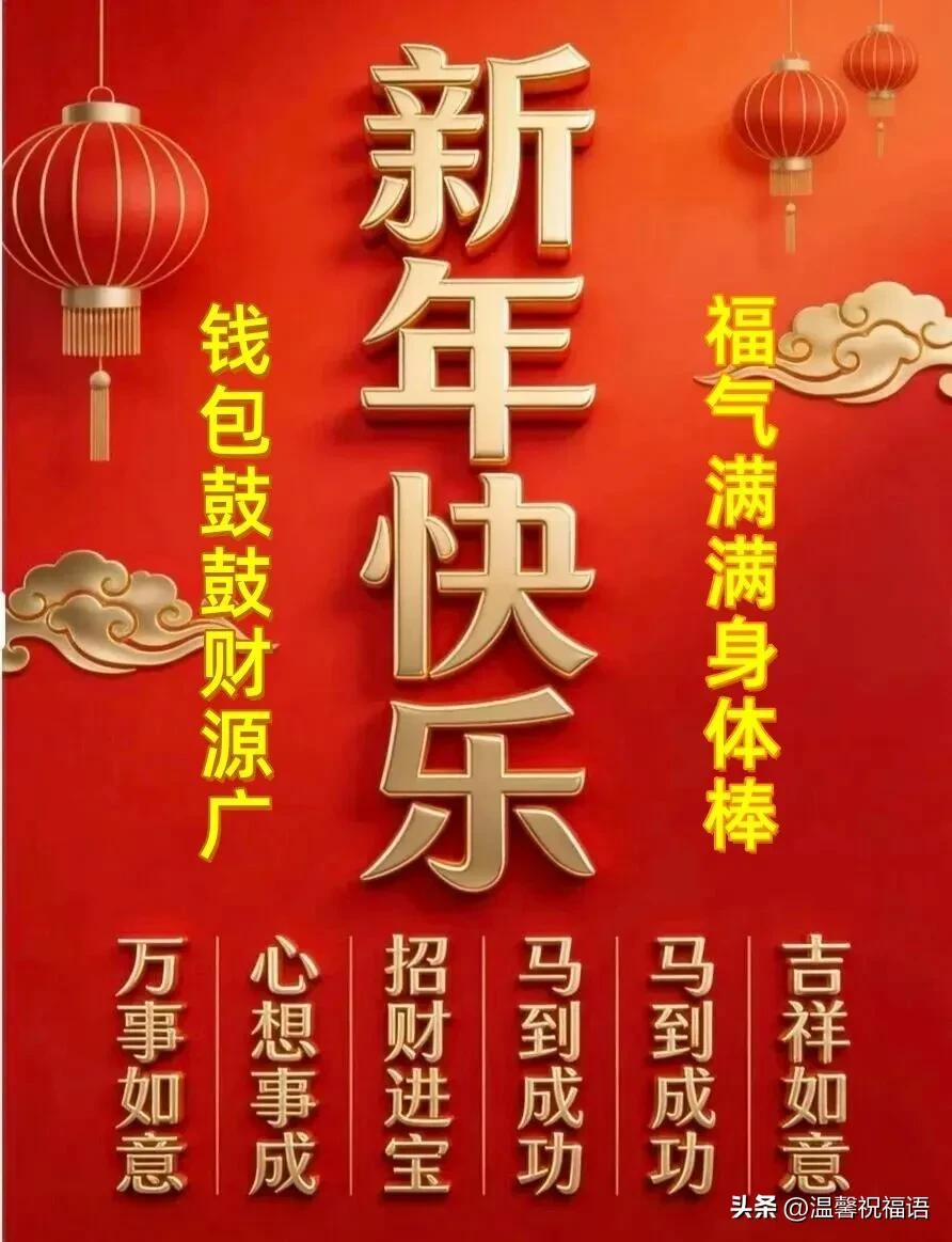 23、新年好,祝新年的一年吉祥如意,前程似錦,吉星高照,財運亨通,閤家歡樂, 飛黃騰達,福如東海,壽比南山,幸福美滿,官運亨通,美夢連連。 新年快樂!