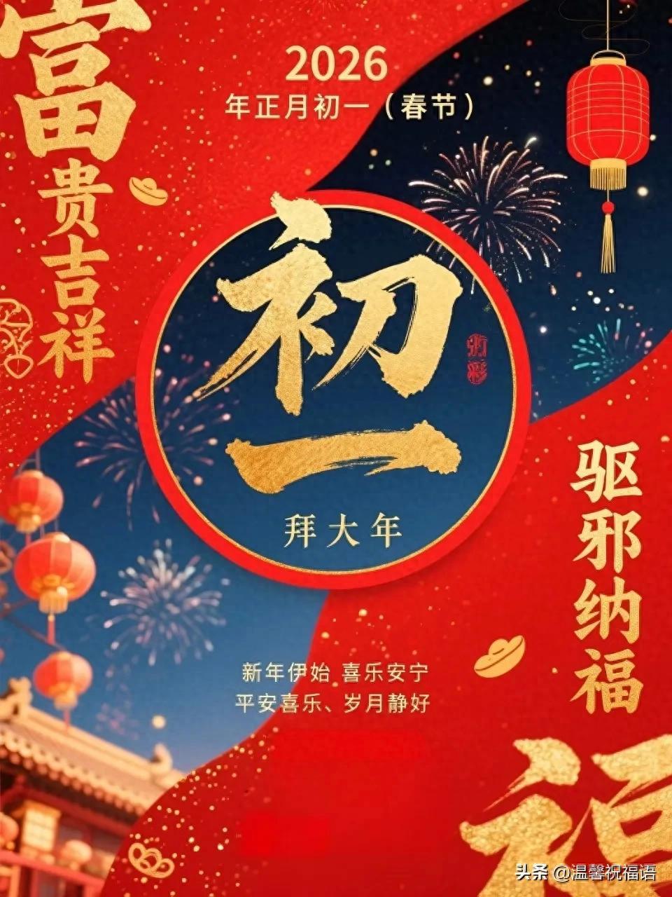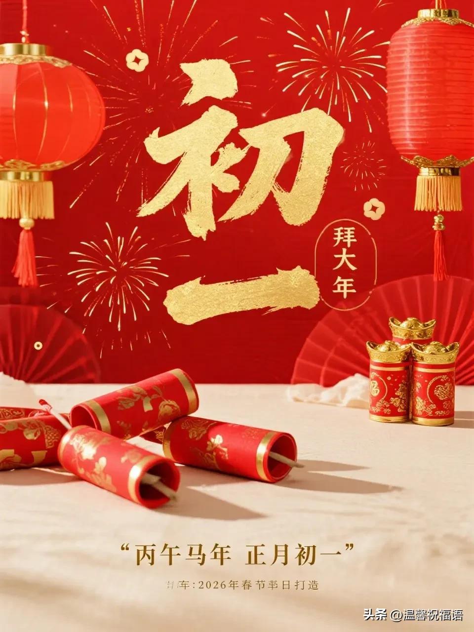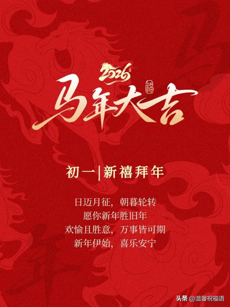 標題:初一啓新程✨ 歲歲皆歡愉~ 大年初一開門紅,煙火人間年味濃 把舊歲的煩惱清零,把新年的快樂加滿,一聲問候暖心頭,一份祝福伴整年~願你馬年福氣爆棚,天天都有小驚喜