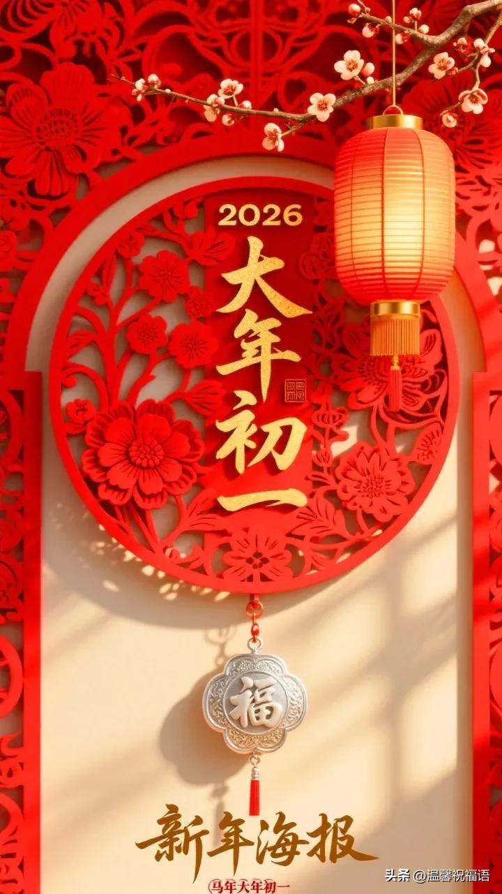 新歲已至,美好啓程。祝你大年初一好運連連,馬年步步登高! 家人閒坐,燈火可親。初一快樂,祝你馬年闔家團圓,幸福安康! #新年快樂