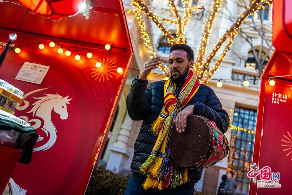 來自津巴布韋的商戶進行當地傳統文藝表演,本屆坊會國際文化市集匯聚五大洲14國24個非遺攤位,讓市民遊客不出京城打卡環球年味,感受中外文化碰撞的獨特魅力。中國網記者 鄭亮攝