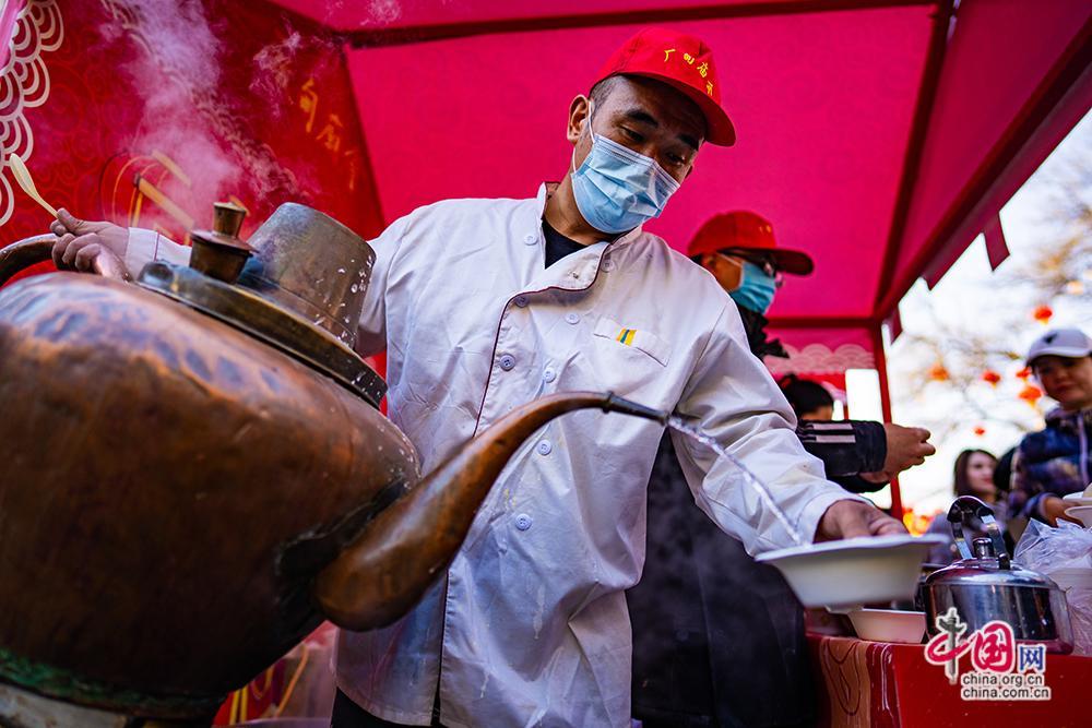 廟會上,炸灌腸、茶湯等地道京味小喫讓遊客在暢享文化盛宴的同時也能大飽口福。中國網記者 鄭亮攝