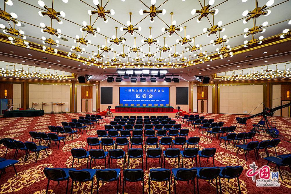 準備就緒的新聞發佈廳。中國網記者 鄭亮攝影