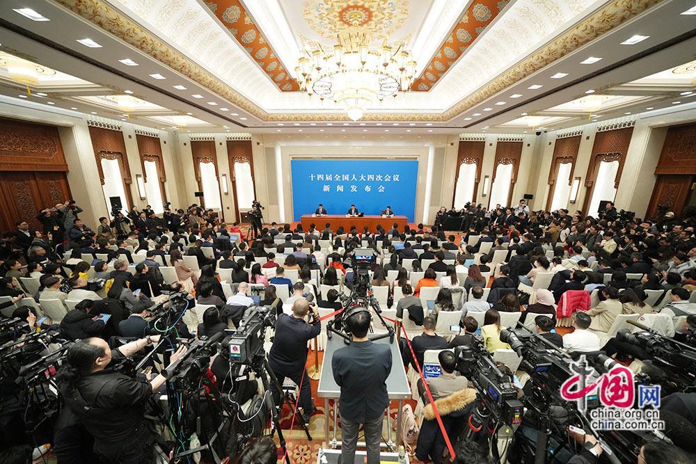 3月4日,十四屆全國人大四次會議在人民大會堂舉行新聞發佈會,大會發言人婁勤儉就大會議程和人大工作相關問題回答中外記者提問。中國網 鄭亮攝影