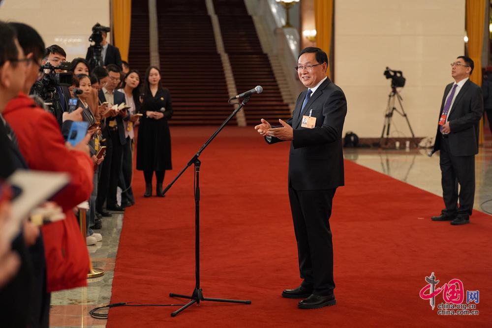 3月5日,第十四屆全國人民代表大會第四次會議首場“部長通道”集中採訪活動在北京人民大會堂舉行。這是國務院國有資產監督管理委員會主任張玉卓接受媒體採訪。中國網記者 董寧攝影