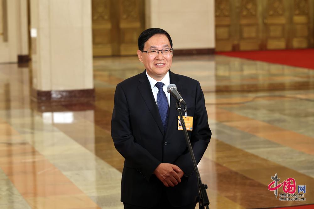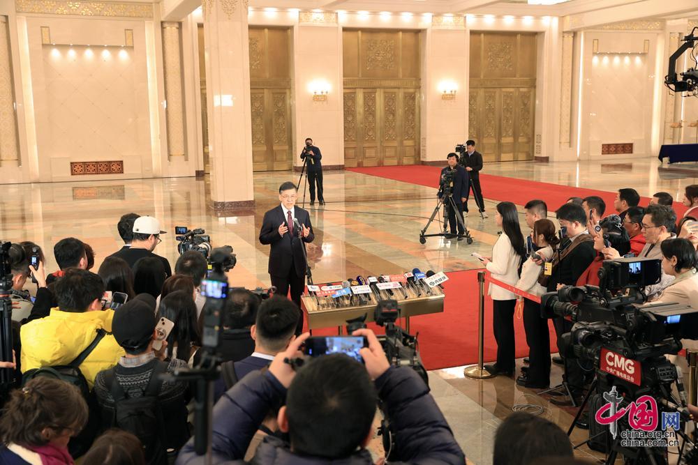 3月5日,第十四屆全國人民代表大會第四次會議首場“部長通道”集中採訪活動在北京人民大會堂舉行。這是工業和信息化部部長李樂成接受媒體採訪。中國網記者 鄭亮攝影
