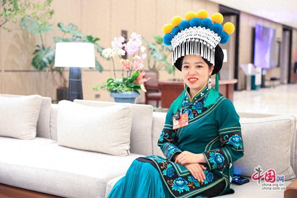 全國人大代表、非遺代表性項目彝族刺繡傳承人金瑞瑞。中國網記者 倫曉璇攝