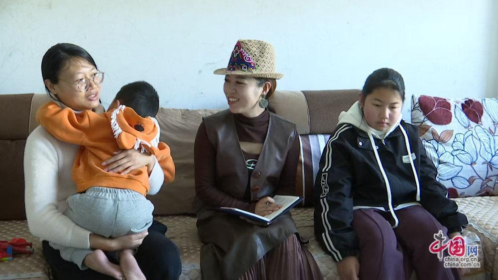 全國人大代表、非遺代表性項目彝族刺繡傳承人金瑞瑞在村民家中調研。(受訪者供圖)