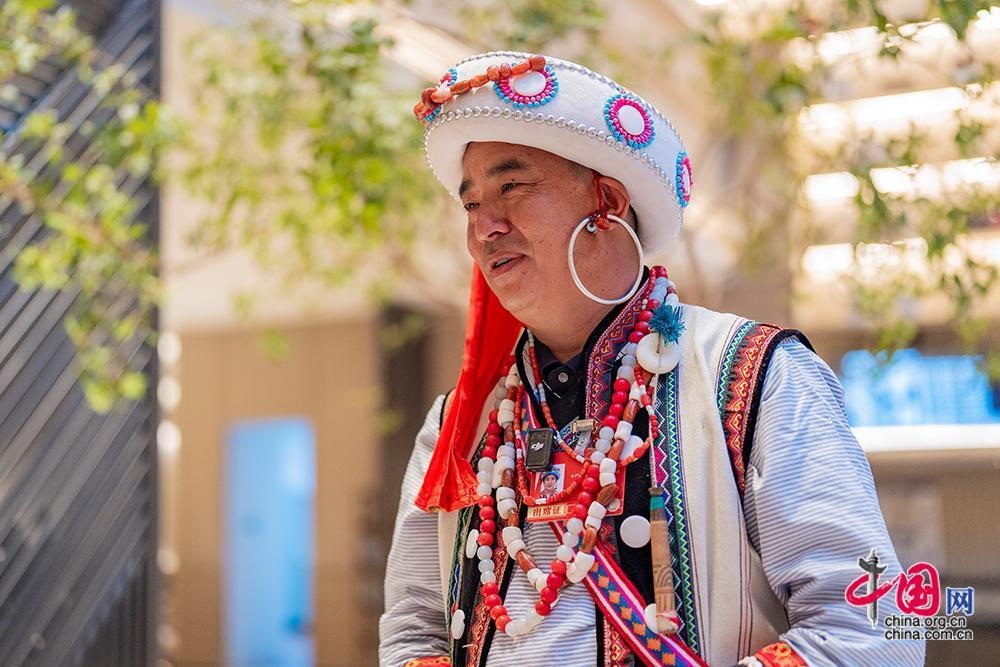 全國人大代表、怒族非遺傳承人鬱伍林。中國網記者 鄭亮攝