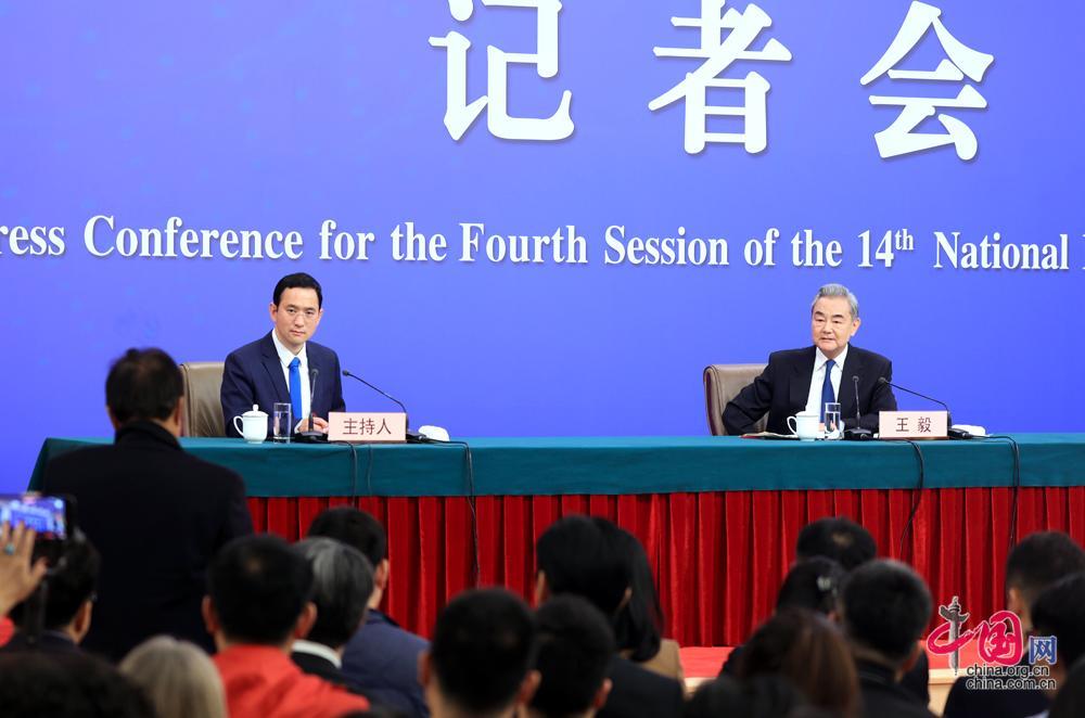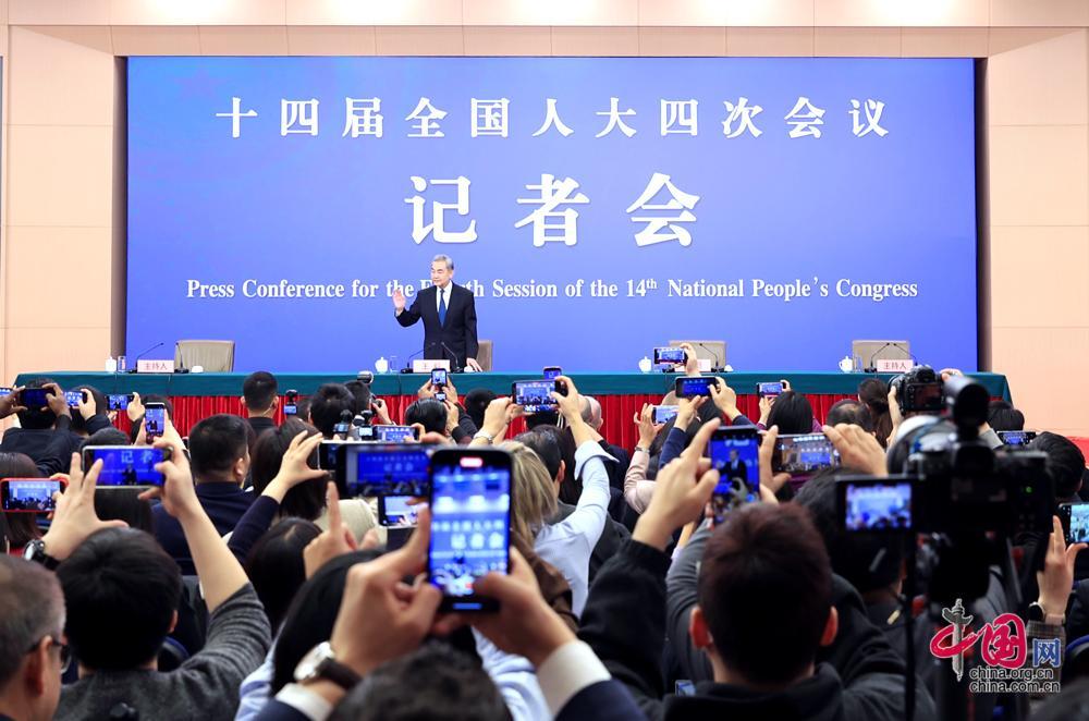 3月8日,十四屆全國人大四次會議在北京梅地亞中心新聞發佈廳舉行記者會。中共中央政治局委員、外交部長王毅就“中國外交政策和對外關係”相關問題回答中外記者提問。中國網記者 鄭亮攝影
