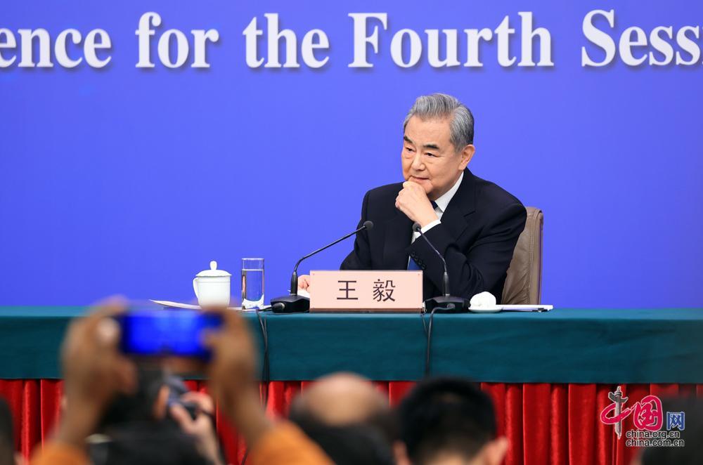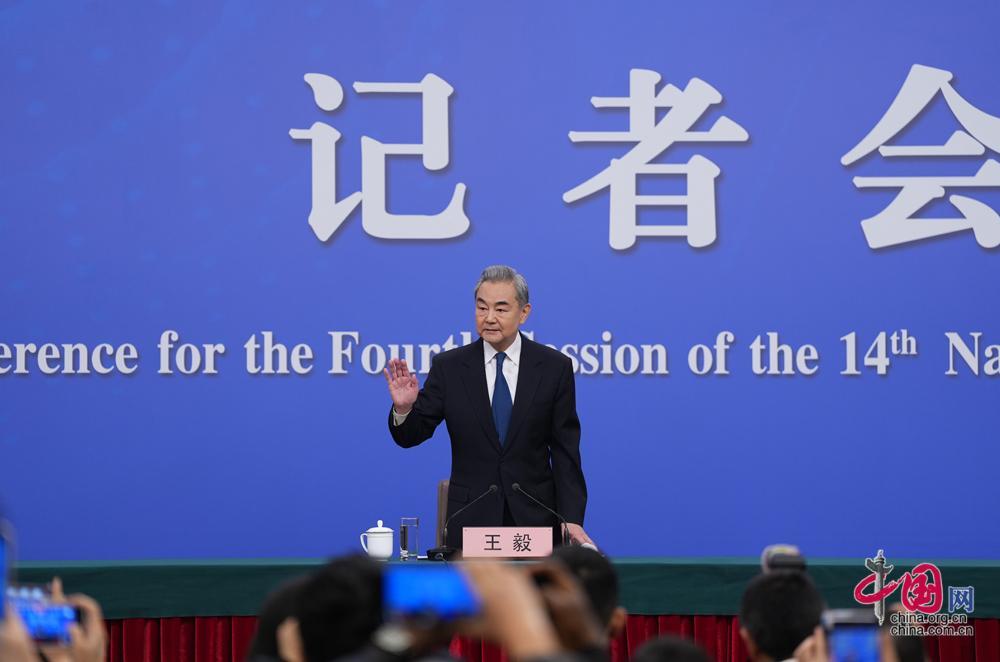 3月8日,十四屆全國人大四次會議在北京梅地亞中心新聞發佈廳舉行記者會。中共中央政治局委員、外交部長王毅就“中國外交政策和對外關係”相關問題回答中外記者提問。中國網記者 董寧攝影