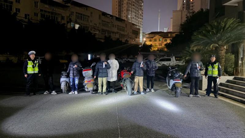 羣衆的擔憂便是交管部門的整治重點。大英縣公安局交管大隊及時發現這一惡劣行爲後,立即啓動調查程序,堅決遏制此類違法亂象。民警依託天網監控系統,仔細排查沿途畫面,精準鎖定了涉事摩托車的車輛信息,隨後順藤摸瓜、循線追蹤,迅速鎖定了5名違法行爲人的身份及落腳點。經過高效推進,1月27日,交管大隊依法對這5名青年的多項交通違法行爲分別作出處罰,用執法力度彰顯了交規的嚴肅性,也給心存僥倖者敲響了警鐘。