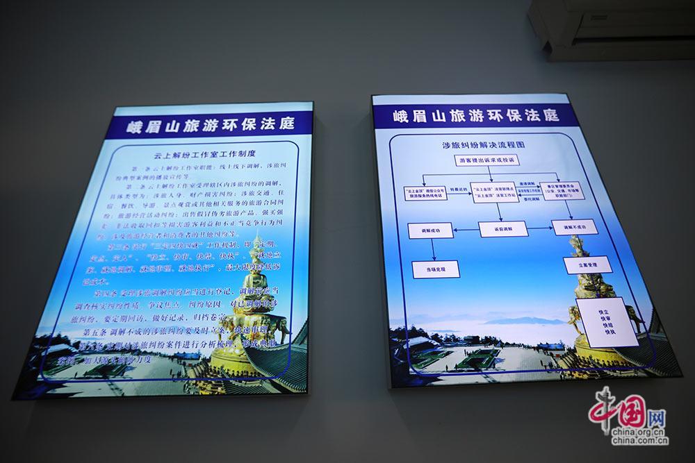 峨眉山旅遊環保法庭線上解決糾紛工作室流程展示。中國網 趙娜攝影