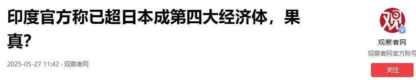 3.《印度官方稱已超日本成第四大經濟體,果真?》2025-05-27 11:42 | 來源:觀察者網
