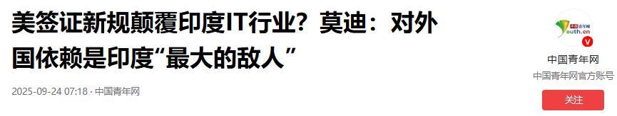 2.《美簽證新規顛覆印度IT行業?莫迪:對外國依賴是印度“最大的敵人”》2025-09-24 07:18 | 來源:中國青年網