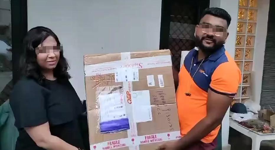 小關出門取快遞時,婆婆剛好拿着包裹進了門,看到小關,婆婆笑得非常開心;