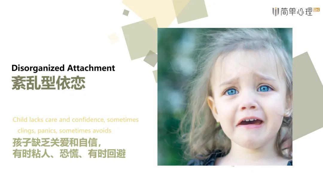 混亂/迷失方向型依戀的孩子有時候會特別的粘人,有時候又會特別的抗拒,處於一個比較混亂的狀態,他們對照顧者既渴望又害怕。