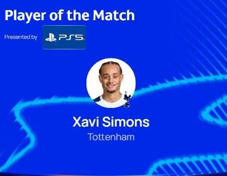 本場比賽哈維-西蒙斯表現不俗,貢獻1次助攻,4次關鍵傳球,賽後他也當選歐冠官方評選出的本場最佳球員。