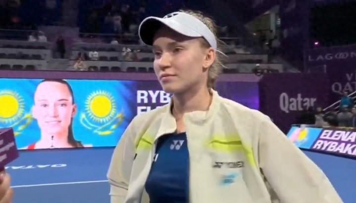 02月12日訊 WTA1000多哈站,萊巴金娜三盤擊敗鄭欽文,晉級8強。賽後萊巴金娜接受場內採訪。
