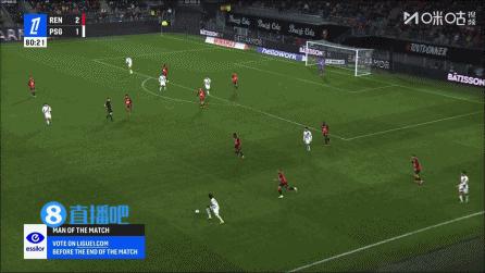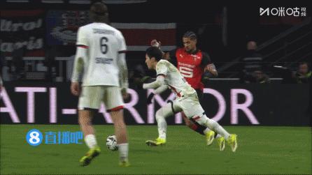 第34分鐘,塔馬裏禁區前沿帶球內切,連續擺脫晃開角度後起腳兜射破門,雷恩1-0領先!↓