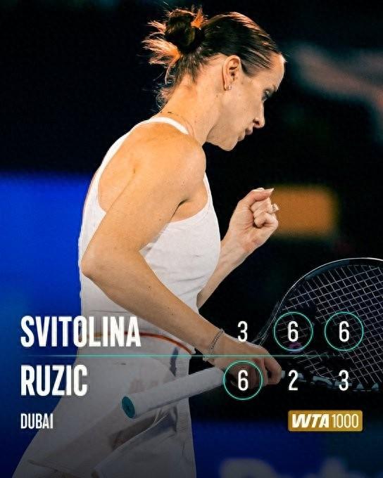 2月20日訊 WTA1000迪拜站1/4決賽,兩屆賽會冠軍、7號種子斯維託麗娜以3-6 6-2 6-3逆轉幸運落敗者魯季奇,晉級四強。