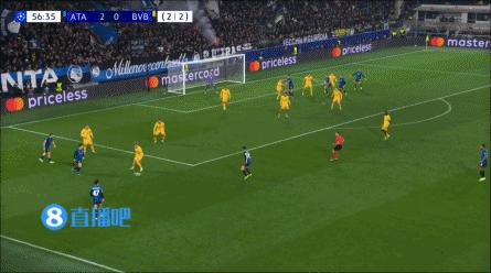 第57分鐘,德容恩禁區前左側送出斜傳過頂球,後門柱位置帕薩利奇頭球砸進球門!亞特蘭大3-0領先,總比分3-2反超多特↓